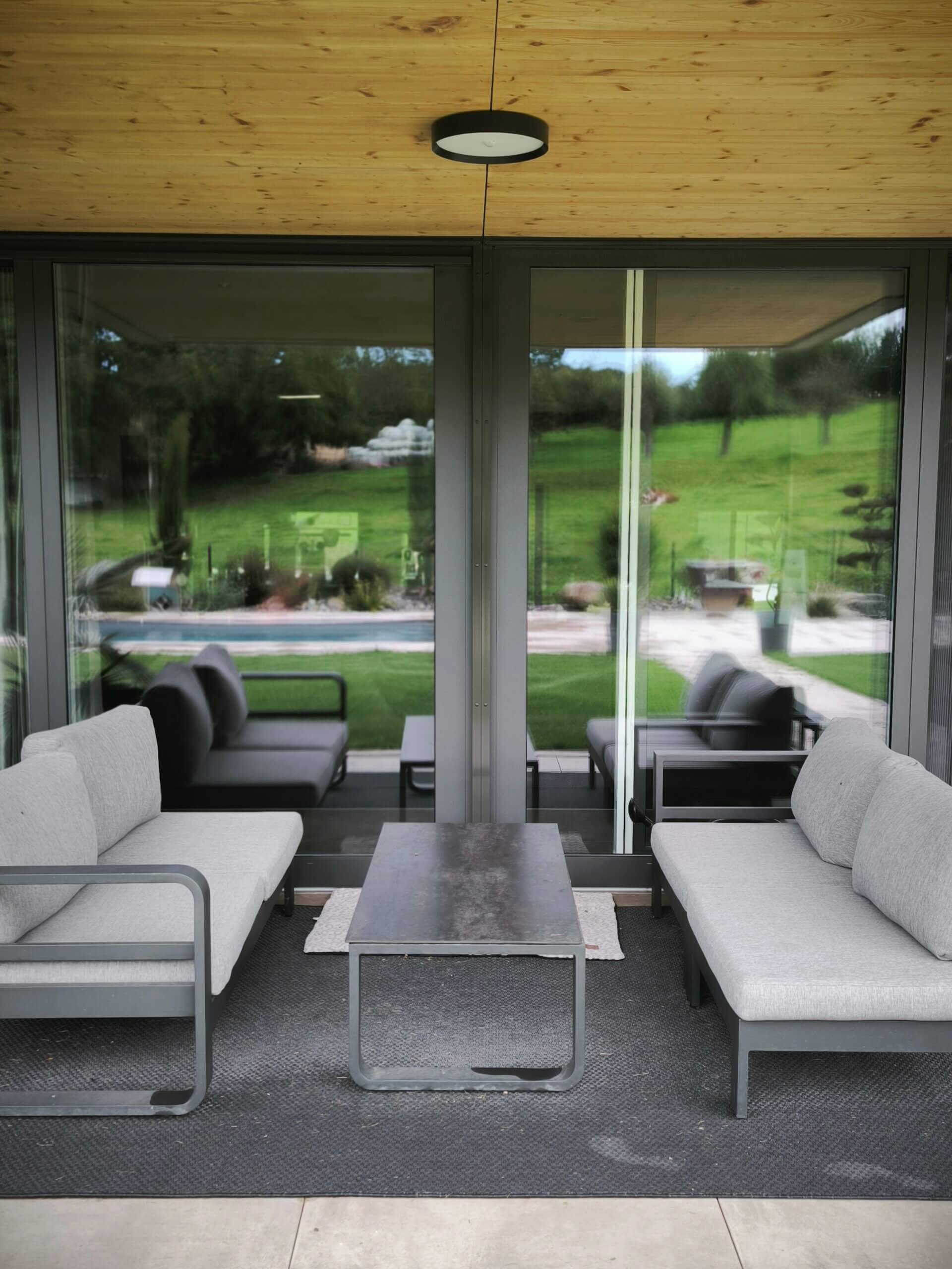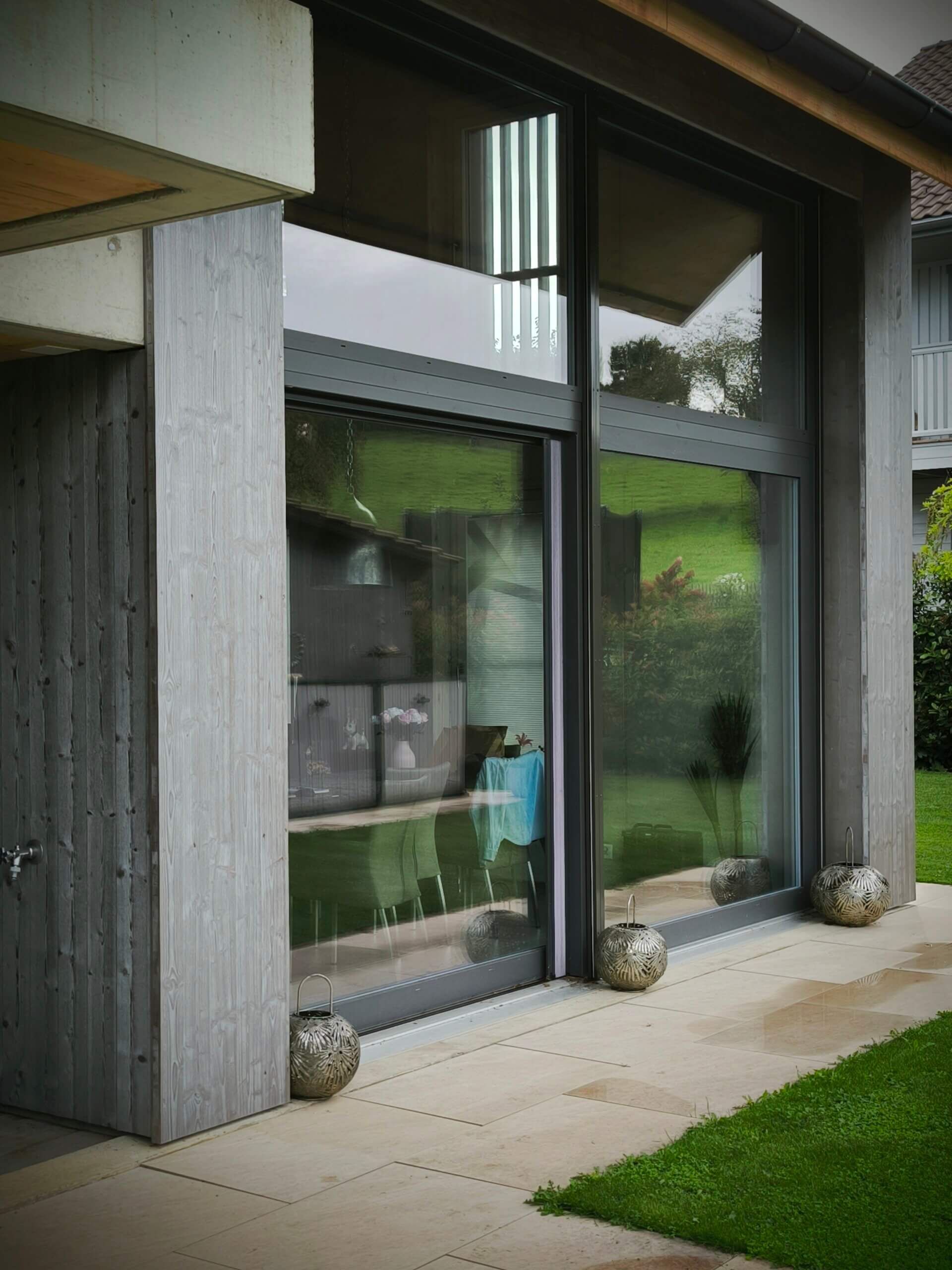 Modernes Design trifft auf Komfort: Die Hebeschiebetüre  sorgt für lichtdurchflutete Räume mit maximaler Leichtigkeit. Ergänzt durch die  Fenster entsteht eine elegante, energieeffiziente Lösung für stilvolles Wohnen.